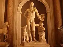 The Pighini accumulated a select collection of ancient statuary, including Meleager and the Calydon Boar, a Roman copy of a Greek original attributed to Skopas. The statue was found by Ulisse Aldrovandi in a vineyard outside of Porta Portese,[2] and is now part of the Museo Pio-Clementino in the Vatican.