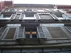 In contrast to the difficulty of observing it, the decoration of the upper floors of the building shows itself to be extraordinarily elaborate and exceptionally complex, in a superimposition of fantastic beings, monstrous masks, herms in the shape of armour and planetary deities, figures combining clawed legs, fish tails, bird's wings and female faces, with obvious magical and alchemical references extracted from Hermeticism (philosophy).[4]