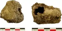 The primary sources of paleoparasitological material include mummified tissues,[6][5][7] coprolites (fossilised dung) from mammals[8] or dinosaurs,[9] fossils,[10] and amber inclusions.[11] Hair,[12] skins,[13] and feathers[14] also yield ectoparasite remains. Some archaeological artifacts document the presence of animal parasites. One example is the depiction of what appear to be mites in the ear of a "hyaena-like" animal in a tomb painting from ancient Thebes.[15]