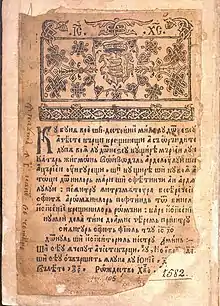 Palia de la Orăștie is the first known translation of the Pentateuch in Romanian. The book was printed in 1582 in the town of Orăștie,[1] then a local center of reformation within the Principality of Transylvania, possibly under the patronage of Stephen Báthory. It was written using the Romanian Cyrillic alphabet and is the earliest known translation, even partial, of the Old Testament in Romanian.