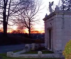 The Palisades Cemetery is located on the cuesta, or descending ridge of the Palisades in North Bergen, New Jersey. Its main entrance on Bergen Turnpike and Union Turnpike. It is adjacent to the Weehawken Cemetery and is one of several on the western slope of North Hudson County.