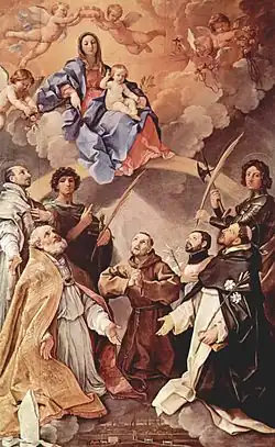 - ↑ Madonna and Child in Glory with Saints Lodovico, Alessio, John the Baptist, Catherine, Francis, and Clare (1587–1588), by Annibale Carraci, Pinacoteca Nazionale of Bologna.