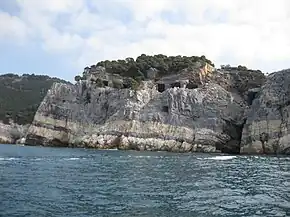 Palmaria is an Italian island situated in the Ligurian Sea, at the westernmost end of the Gulf of La Spezia. With an area of 1.6 square kilometres (0.6 sq mi), it is the largest island of an archipelago of three closely spaced islands jutting from the mainland at Portovenere. The outer islands, Tino and the tiny Tinetto, lie further south.