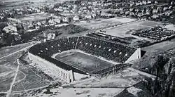 Palmer Stadium was a stadium in Princeton, New Jersey, United States. It hosted the Princeton University Tigers football team, as well as the track and field team.[1] The stadium held 45,750 people at its peak and was opened in 1914 with a game against Dartmouth. It closed in 1996 with a game against Dartmouth. Princeton Stadium was built on the site (albeit pushed slightly further north) in 1997. The building was named for Stephen S. Palmer, a trustee of the university, by his son, Edgar Palmer III. Like Harvard Stadium, it was horseshoe-shaped (which was modeled after the Greek Olympic Stadium), but was wider, including a full-sized track (around the football field) . It opened to the south (facing Lake Carnegie) and the grand main entrance was at the north.