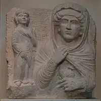 Palmyrene funerary reliefs are almost 4,000 busts on decorative slabs closing burial niches inside underground tombs, produced in Palmyra over three centuries from the middle of the first century BC.[1][2] It is the largest corpus of portrait sculpture in the Roman world outside Rome[3] and the largest collection of funerary representations from one place in the classical world.[2]