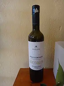 Palo Cortado is a rare variety of sherry that is initially aged under flor to become a fino or amontillado, but inexplicably loses its veil of flor and begins aging oxidatively as an oloroso. The result is a wine with some of the richness of oloroso and some of the crispness of amontillado. Only about 1–2% of the grapes pressed for sherry naturally develop into palo cortado.[1]