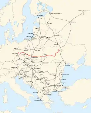 The Corridor IIІ is one of the Pan-European corridors. The corridor follows the route: Brussels - Aachen - Cologne - Dresden - Wrocław - Katowice - Kraków - Lviv - Kyiv