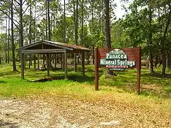 The community was known as Smith Springs until 1893 when some Bostonians purchased the land about the five springs here and renamed the town Panacea, after the goddess of universal remedy, because of the curative properties of the waters.[7][8] During the Civil War a large plant here supplied salt for much of western Florida.[9] Most of the development in the area was destroyed by a hurricane in 1928.[10]