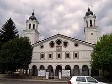 Panagyurishte (Bulgarian: Панагюрище, also transliterated Panagjurište, pronounced [panɐˈɡʲuriʃtɛ]) is a town in Pazardzhik Province, Southern Bulgaria, situated in a small valley in the Sredna Gora mountains. It is 91 km east of Sofia, 43 km north of Pazardzhik. The town is the administrative center of the homonymous Panagyurishte Municipality. Panagyurishte is an important industrial and economic center, the hub of the Bulgarian optical industry and a major copper extraction and processing site. According to the 2021 census, it has a population of 15,275 inhabitants.[1] Panagyurishte is a town of significant historical importance, being the center of the 1876 April Uprising against the Ottoman Empire. The renown Thracian Panagyurishte Treasure was found near the town.