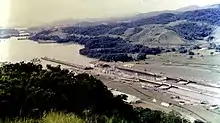 The Panama Canal fence was a separation barrier built by the United States in the Panama Canal Zone that divided the Republic of Panama into two separate sections.[1][2] The Canal Zone, primarily consisting of the Panama Canal, was a strip of land running from the Pacific Ocean to the Caribbean. The fence, also called “Fence of Shame”[2] and "another Berlin Wall”[2] portrayed the centre of geopolitical and diplomatic turmoil between the United States and the Republic of Panama.[3] Some evidences suggest construction,[4][5] breaking and repairs[6] of the fence while others including many aerial photographs and Life magazine (January 24, 1964) confirm that there was no such physical barrier between the Canal Zone and Panama.
