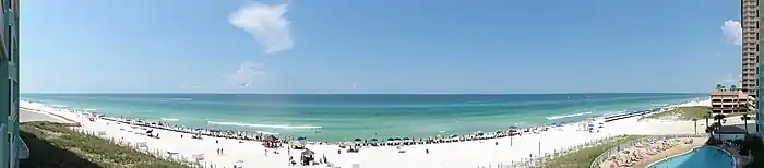 Panama City Beach is a resort town in Bay County, Florida, United States, on the Gulf of Mexico coast. It had a population of 12,018 in 2010.[4] The city is often referred to under the umbrella term of "Panama City". Panama City Beach's slogan is "The World's Most Beautiful Beaches" due to the unique,[5] sugar-white sandy beaches of northwest Florida.