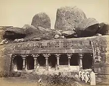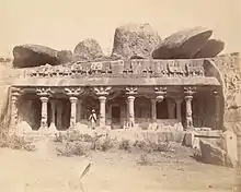 General view of the entrance to the Panchapandava Cave Temple, 1885