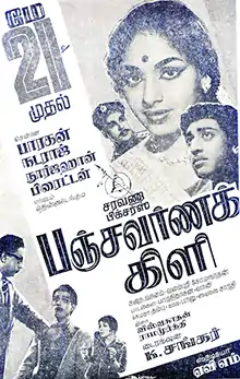 Panchavarna Kili (transl. Macaw) is a 1965 Indian Tamil-language film directed by K. Shankar and produced by Saravana Pictures. The film stars R. Muthuraman, Jaishankar, K. R. Vijaya, Nagesh, Major Sundarrajan and Manorama. It was released on 21 May 1965,[1] and became a commercial success.[2]