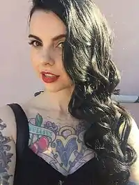 As a model, she has appeared in many tattoo magazine features including several cover issues, and was also photographed for Justice Howard's photography coffee table book, 'Revelations – The Photography of Justice Howard' along with many well known musicians, actors, tattoo artists and tattoo models such as Dave Navarro, Danny Trejo and Mark Mahoney.[9]