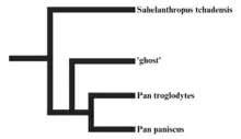| Phylogeny of Panina including the ghost lineage and Sahelanthropus. | |