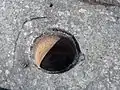 In the second stone there is a hole that would serve for an iron or bronze pole, supported by two struts, where the animals were tied to be sacrificed, which were adorned with garlands. The priests, with white robes and crowns made of laurel/oak/holly/ivy/vine branches, according to the god for whom the sacrifice was intended, carried the "pátera", a kind of round metal plates, in their hands. Later, the "victimarii" came, armed with the "securis", a hatchet used to quarter the victims.