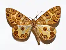 The wingspan of Pantherodes pardalaria can reach about 50 millimetres (2.0 in). These moths have yellow wings with leopard-like blue-grey blotches.