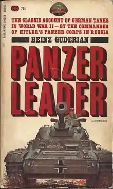 Panzer Leader (German: Erinnerungen eines Soldaten, literally "Memories of a Soldier") is an autobiography by Heinz Guderian. The book, written during his imprisonment by the Allies after the war, describes Guderian's service in the Panzer arm of the Heer before and during World War II.