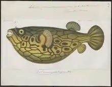 Pao palembangensis[2] (formerly Tetraodon palembangensis), is a species of freshwater pufferfish native to Thailand, Laos, Malaysia and Indonesia in Southeast Asia. Its commonly called the humpback puffer or dragon puffer. It is bred for aquaria as an ornamental fish because of its beautiful skin colouration and pattern.