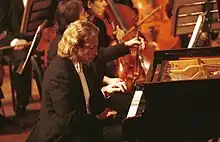 During his almost thirty-year international concert career, his own solo-participations with European, Americaa and Australian orchestras are innumerable. Among the conductors: Roberto Abbado, Gerd Albrecht, Piero Bellugi, Christian Benda, Yoram David, Vladimir Delman, Claus Peter Flor, Heiko Mathias Forster, Lu Jia, Lothar Koenigs, Gerard Korsten, Julian Kavatchev, Gustav Kuhn, Uroš Lajovic, Yoel Levi, John Nelson, John Neschling, Gunter Neuhold, Daniel Oren, Massimo Pradella, Donato Renzetti. Under the baton of Riccardo Muti he appeared in June 2004 with Orchestra Filarmonica della Scala in Liszt's Second Piano Concerto and, in 2008, again conducted by Muti, he was soloist in the symphonic production of Lélio ou Le Retour à la Vie op. 14b by Berlioz together with Gérard Depardieu, the Orchestra Luigi Cherubini, Orchestra Giovanile Italiana, Konzertvereinigung Wiener Staatsopernchor.