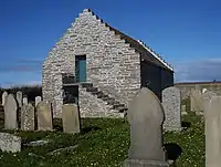 Also on the island is the 12th-century St Boniface's Church[14] (recently restored; open in summer) with a carved Norse "hogback" gravestone (probably also 12th century) in the churchyard. This stands on a substantial and largely unexcavated 9th century, or earlier, Pictish religious site – possibly including a bishop's residence. Remains of a heavily eroded broch can be seen on the shore. Early Christian carved stones, which may date from as early as the 7th century AD, found at this site are on display in The Orkney Museum in Kirkwall and the National Museum of Scotland in Edinburgh. These may be the earliest evidence for Christianity to survive in the Northern Isles.