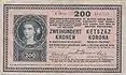 After the World War, the Hungarian Károlyi government requested the Austro-Hungarian Bank to deliver printing plates and banknote paper to Hungary, since it would have been too dangerous to deliver printed banknotes due to the political uncertainty. The banknotes (1, 2, 25 and 200 crowns) printed in Budapest under the Károlyi government and then under the Hungarian Soviet Republic were distinguished with a different serial number (1 K: higher than 7000; 2 K: higher than 7000; 25 K: higher than 3000; 200 K: higher than 2000). After the fall of the Soviet Republic, Vienna declared these banknotes to be counterfeits.