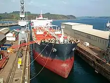 One of Parakou's Oil/Chemical Tankers, St. Johannis in the dock at Falmouth in 2012