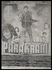 Parakrami is an unreleased Indian Hindi-language film directed by Vijay Deep, starring Nutan, Mithun Chakraborty, Sangeeta Bijlani, Kader Khan, Kiran Kumar, Charan Raj, Sharat Saxena, Satish Shah, Tiku Talsania and Alok Nath.