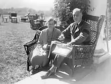 Franklin (showing leg brace) and Eleanor at Hyde Park (1927)