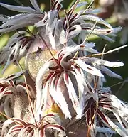 The shrub grows to 1.7 m (5.6 ft) tall and flowers mainly from May to October.[3] Fire destroys the plant but the seeds survive. The plant is bisexual and pollinated by insects.[3] The fruit ripens two months after flowering and the seeds fall to the ground where they are spread by ants.[3]