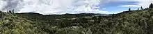 The manner of gold mining changed in the 1890s when mining companies took over, with miners employed on a wage and hydraulic sluicing became the main extraction method.[3] The companies built three dams in the hills behind Parapara to have secure water supply for sluicing: Druggans Dam, Parapara Dam, and Boulder Lake. Druggans Dam is a 20-hectare (49-acre) reservoir. Parapara Dam is a dam in the Parapara River that was used to sluice the valley of the Glen Gyle Creek; the creek originally flowed into Appos Creek, which in turn drains into the Aorere River, but the miners removed a whole hillside and it now flows into Parapara River. At 985 metres (3,232 ft) above sea level, Boulder Lake is the highest of the lakes and is much smaller than originally as the dam got blown up in the 1930s.[10][11]
