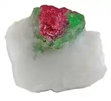 ![]() Single crystal of pargasite, 1.5 cm long, on a matrix of white marble from Hunza Valley, Pakistan | |