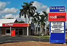 Park Avenue Mall is a shopping center at 37 Main Street (23°21′27″S 150°30′39″E / 23.3575°S 150.5108°E / -23.3575; 150.5108 (Park Avenue Mall)).[20] It contains the Park Avenue Post Office.[22]
