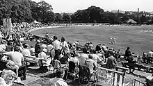 Park Road is a cricket ground in Buxton, Derbyshire, England. It is the home ground of Buxton Cricket Club, and was formerly used by the Derbyshire County Cricket Club first XI between 1923 and 1986. The first First-class match on the ground was in June 1923, when Derbyshire faced the touring West Indians. The ground’s biggest claim to fame was in 1975, when the second day’s play of the County Championship match against Lancashire was wiped out due to snow.[1] Derbyshire generally played one County Championship match at Buxton every year from 1930 to 1976, but have only played there four times since. The most recent first-class match was in August 1986 against Lancashire, who have provided the opposition for 26 of the 48 first-class games at the ground. The ground also hosted ten Derbyshire List A fixtures between 1969 and 1986.