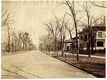 Historic photograph of Euclid Avenue, with the Howe mansion on the far right