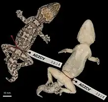 Specimens of Paroedura rennerae were not originally recognized as a separate species from Mocquard's Madagascar ground gecko, with collected specimens labelled as P. bastardi or P. sp. aff. bastardi.[2][3] It was not until 2021 that an integrative revision of the P. bastardi species complex found that P. rennerae represents a morphologically and genetically distinct species. An adult female collected on 2 December 2010 from Kirindy Reserve was designated as the holotype specimen of P. rennerae. The specific name honors botanist and biologist Susanne Renner.[4]