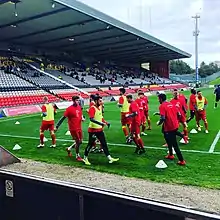 Firhill has been used by other football teams and for rugby over the years. Between 1986 and 1991 Clyde ground shared with Thistle,[89] following their eviction from Shawfield.[91] Hamilton Academical also ground shared for two spells over seven years,[92] following them being forced out of Douglas Park in 1994. In December 2005, Firhill also became the home of Glasgow's professional rugby union team, Glasgow Warriors, when they moved from their previous base at Hughenden. After returning to Hughenden in 2006, the Warriors took up a two-year residency at Firhill from the start of the 2007–08 Celtic League season.[93] This was extended in April 2009 for a further five years.[94][95] Glasgow Warriors left Firhill after the 2011–12 season and moved to Scotstoun Stadium.[96][97] During the 2012–13 season the ground was also used by Celtic's under-20 squad as their home ground,[98] but following Thistle's promotion this stopped for the 2013–14 season.[99]