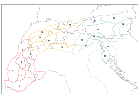 | 16 | Lombard Prealps | Prealpi Lombarde | – | Lombardische Voralpen, Lombardische Alpen |