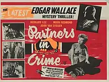 Partners in Crime is a 1961 British crime film directed by Peter Duffell and starring Bernard Lee, Moira Redmond and John Van Eyssen. Part of the long-running series of Edgar Wallace Mysteries films made at Merton Park Studios, it is loosely based on the 1918 novel The Man Who Knew by Edgar Wallace.[1]