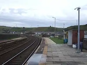 Immediately north and south of Parton, the line runs almost on the seashore, at the foot of cliffs which require supervision and occasional stabilisation to prevent landslides. Sea erosion is also a danger,[1] and 15 m.p.h speed restrictions are in force over much of the section between here and Harrington, which is restricted to a single line.
