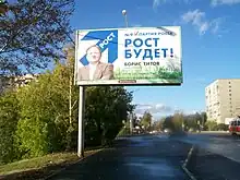 Party of Growth (Russian: Партия Роста, romanized: Partiya Rosta, pronounced [ˈpartʲɪjə ˈrostə]) is a liberal-conservative political party in Russia with representatives in several local legislatures. Created in March 2016 on the basis of the Right Cause party, the party's main policy stances are liberal free market economy, democracy and protecting the rights of the middle class. The party has been led by Boris Titov since its founding. The party is a member of the pro-Putin All-Russia People's Front.[5][6][7][8][9]