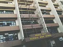 Pasig City Science High School (Pasig Science, formal or PasigSci, informal) was established in 2005 under the administration of Pasig Mayor Soledad Eusebio. After a year of operation at the Pamantasan ng Lungsod ng Pasig, the school moved to its own building adjacent to the Rainforest Park in Maybunga. The school's first principal was Mr. Noel Salalima.[2] He served as principal until 2013. He was then followed by Mr. Jay Mathias Arellano from 2014 until June 2018. The current principal of the school is Mr. Charlie O. Fababaer.