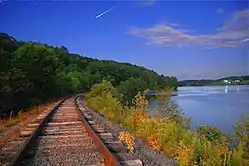 ![]() A moonlight view of the Passagassawakeag River along the tracks of the Belfast and Moosehead Lake Railroad just beyond the old Upper Bridge a little more than a mile inland from Belfast, ME, where it empties into Belfast Bay. | |