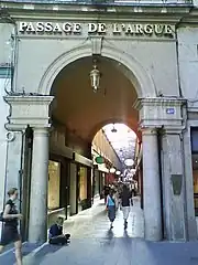 The Passage de l'Argue is a covered arcade in the Bellecour quarter, in the 2nd arrondissement of Lyon, which connects the rue de la République to the rue Édouard-Herriot and the rue de Brest.[1] It is continued across rue de Brest by the Petit Passage de l'Argue, which was part of the main passage until the road was constructed. The Passage de l'Argue is one of the oldest arcades in the French provinces, built at the same period and on the same model as Parisian arcades.[2] Home to many luxury retailers, it plays a significant role in the trade of the Presqu'île.[3]