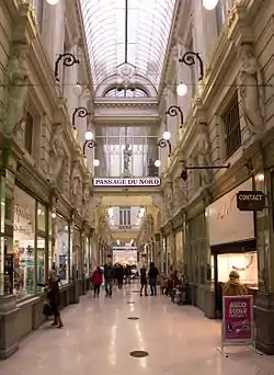 The Passage du Nord (French) or Noorddoorgang (Dutch), meaning "Northern Passage", is a glazed shopping arcade in central Brussels, Belgium. It was built in 1881–82 in an eclectic style by Henri Rieck, following the covering of the Senne and the creation of the Central Boulevards. It is decorated with 32 caryatids in the neoclassical style by Jean-François-Joseph Bertheux and sculptures and putti by Constant Albert Desenfants.[1]