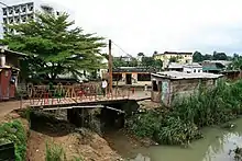 The Passerelle de Bessengue is an artwork in Douala (Cameroon). It is a wooden bridge with an iron handrail, painted in different colors, each one representing people of different ethnic groups holding hands. It was inaugurated during the Salon Urbain de Douala en 2007.
