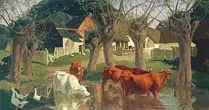 In 1994, Terry Gifford proposed the concept of a "post-pastoral" subgenre. By appending the prefix "post-", Gifford does not intend this to refer to “after” but rather to the sense of “reaching beyond” the contraints of the pastoral genre, but while continuing the core conceptual elements that have defined the pastoral tradition. Gifford states that British eco-critics such as Greg Garrard have used the "post-pastoral" concept, as well as two other variants: "gay pastoral" and the seemingly contradictory "urban pastoral."[21] In 2014, The Cambridge Companion to the City in Literature had a chapter on the urban pastoral subgenre.[22] Charles Siebert's Wickerby: An Urban Pastoral describes a man who splits his time between a gritty Brooklyn apartment, where the night is filled with the sounds of pigeons, starlings, and youth gangs shouting, and driving to rural Quebec to squat in an abandoned, tumbledown cabin in rural Quebec.[23] Greg Garrard has also described the literary concept of "radical pastoral".[24]