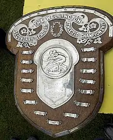 The McEvedy Shield was donated by McEvedy in 1922. It is an annual athletics competition held in Wellington, New Zealand, for four of the region's boys' secondary schools.[9] The competition was cancelled in 1948 due to a polio epidemic, and in 2021 because of the coronavirus pandemic.[10]