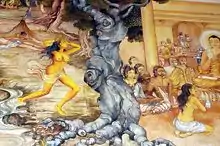 At that time the Buddha was staying at the Jetavana, Anathapindika's monastery. Patacara, after running through Savatthi naked and disconsolate, prostrated at the feet of the Buddha, describing her family tragedies. The Buddha explained this using Buddhist doctrines, and Patacara immediately understood the nature of impermanence. When she was asked to tell her actual name, she felt awkward as her actual name was 'Roopwati' which means beauty and her condition was completely opposite of her name. Hence, she introduced herself as 'Patacara' (which means 'cloak-walker'[2]). She thus became a sotapanna, the first stage of aryahood. Then she became a bhikkhuni and soon attained arhat. The Buddha said that she was the foremost Keeper of the Vinaya amongst the Nuns, and thus the female counterpart of the monk Upali. Her interest in the "Rules of Conduct" of the monastic life was attributed to her reflections on her former indulgences.