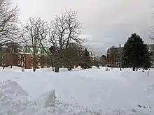 Construction of Paton College began in 1962, with most of the nine residences being completed by 1968.[1] The college is named after John Lewis Paton, who was the first President of Memorial University College from 1926 to 1933.[1] The nine original Houses of Paton College were named in honour of various benefactors of Memorial University College and Memorial University, including Lord Rothermere and Sir Eric Bowater. Coughlan College, a single dormitory building originally operated as one of four denominational residences, became a part of Paton College in the mid-1990s. A modified Paton family coat of arms was bestowed upon the college and serves as its official heraldic achievement to this day.